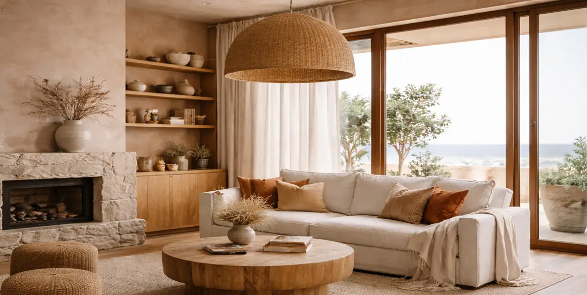 Cool greys are stepping aside. In 2026, we’re seeing a strong move toward warm, grounding tones — clay, sand, caramel, terracotta, muted browns and soft stone. These tones promote comfort, relaxation, and an inviting atmosphere.